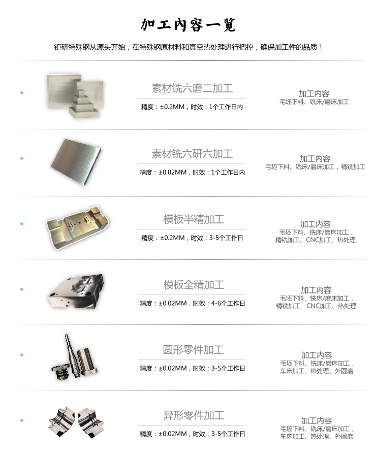 | 品牌 | 型號 | 加工能力 |